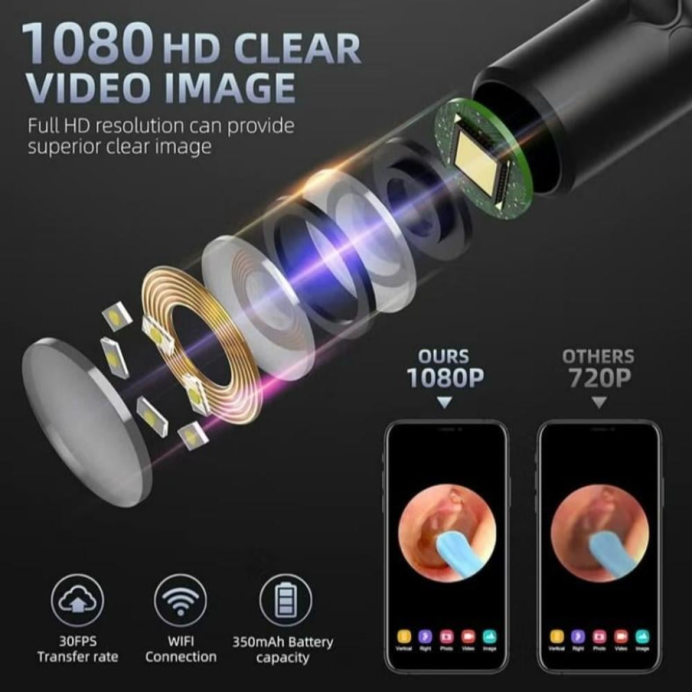 - 🌟 استكشاف 360° ورؤية HD 1080P: كاميرا عالية الدقة بزاوية واسعة لفحص الأذن بوضوح كامل.