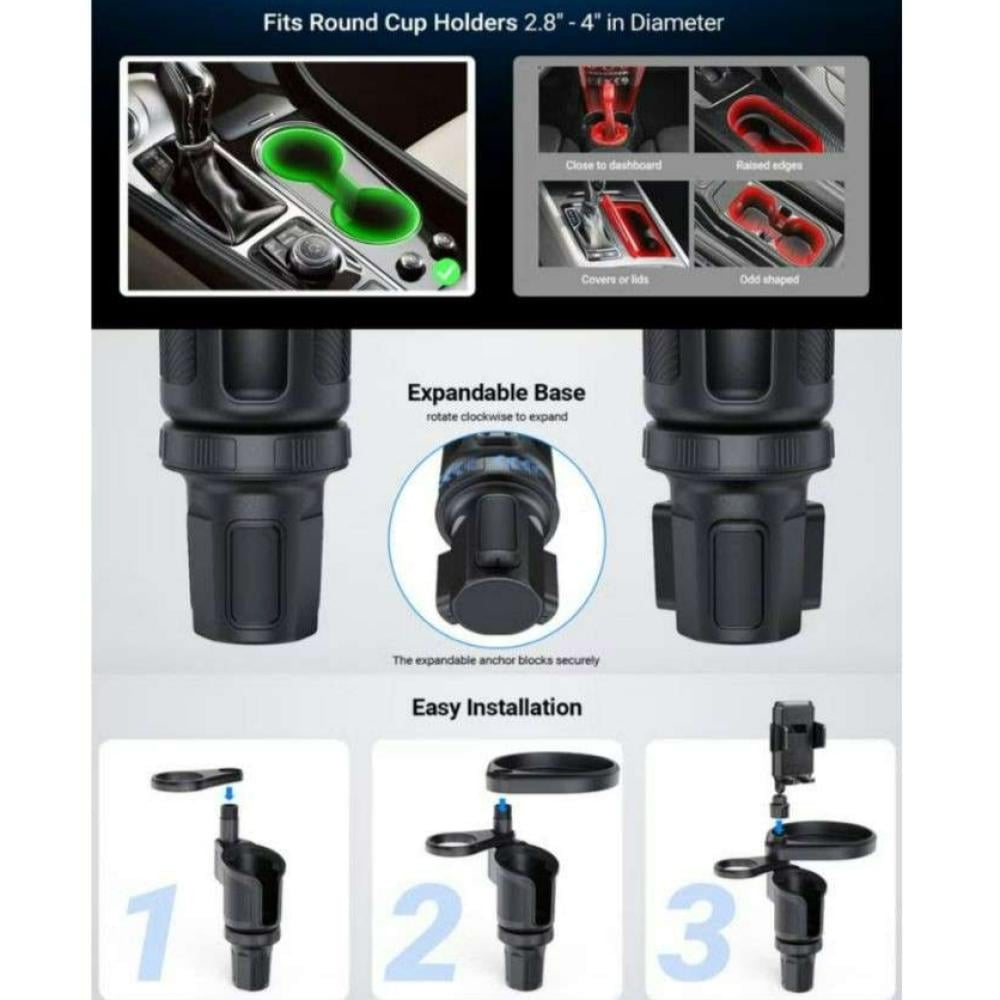 استمتع بالراحة والتنظيم أثناء القيادة مع حامل الأكواب المتعدد الاستخدامات 4 في 1.